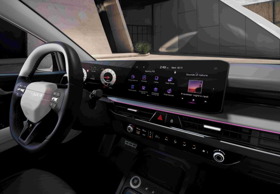 Stonic posouvá vnitřní výbavu svého segmentu na vyšší úroveň. Strategii značky Kia, zaměřenou na zpřístupnění pokročilých technologií širšímu okruhu zákazníků, dokládá především dvojice panoramatických 12,3″ displejů s vysokým rozlišením. Ty propojují digitální přístrojový štít s infotainmentem do jednoho plynulého rozhraní. Zobrazované informace jsou díky tomu přehledné a kabině dodávají technologický vzhled. Multifunkční dotykové ovládání nahradilo klasické prvky ventilace a topení a umožňuje intuitivní přepínání mezi jednotlivými funkcemi.