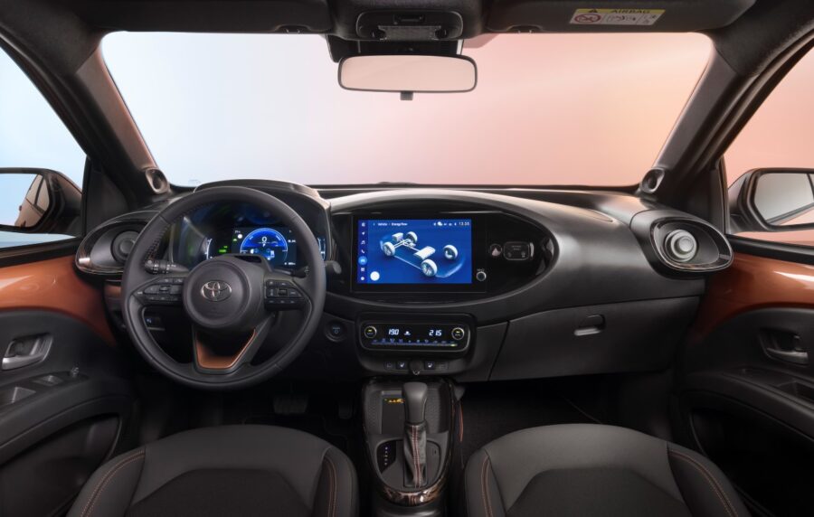 „Výhody full hybridního pohonu dělají z Ayga X ideálního společníka do dnešního městského provozu, kde vůz produkuje nejnižší emise CO₂ ve své třídě, a to 85 g/km. Splňuje tak požadavky nízkoemisních zón, které už platí v některých evropských městech,“ uvedla značka.