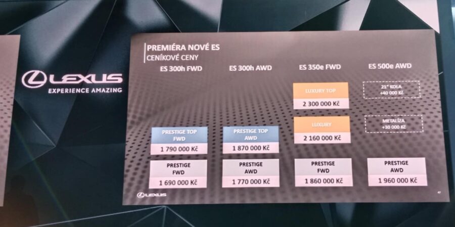 Lexus představuje ve světové premiéře nový model ES. Ta česká se odehrála v pátek 12. prosince v pražském centru Cubex. Novinku představili šéf Toyoty Czech Martin Peleška a country manažer značky Jakub Květoň. Už mají 30 objednávek!