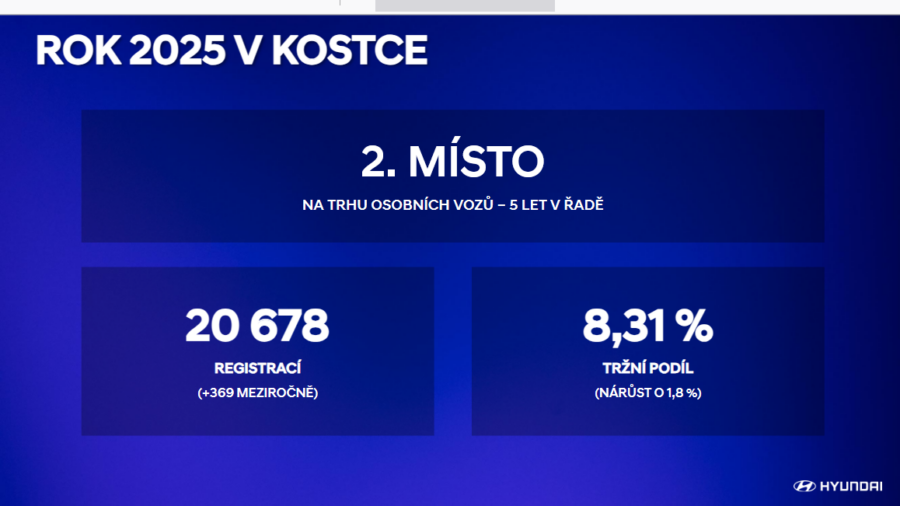 Struktura prodejů zároveň ukazuje, že tuzemští zákazníci korejské značky zůstávají spíše konzervativní. Benzinové motory tvoří zhruba 88 procent registrací, zatímco elektromobily kolem sedmi procent a hybridy asi čtyři procenta.