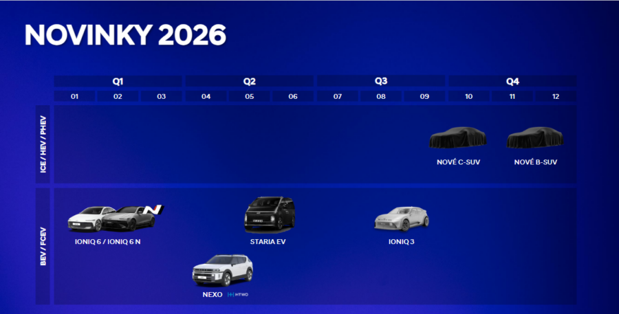 Jednou z hlavních novinek bude kompaktní elektromobil Ioniq 3 zaměřený na segment menších vozů. Další dva důležité modely SUV chce značka představit na konci roku a mnohem větší vlna novinek má následovat v letech 2027 a 2028.