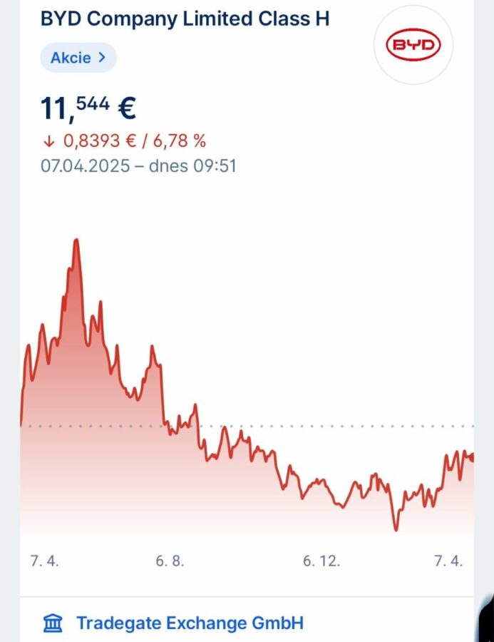 Na frankfurtské burze se za poslední rok snížila cena akcií BYD o více než 6 procent