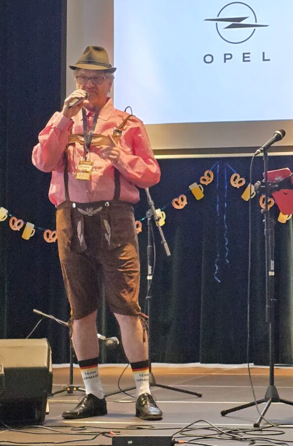 Německý původ vozů značky Opel zdůraznili na neformálním večírku, Astrafestu, Martin Hejral svým oblečením